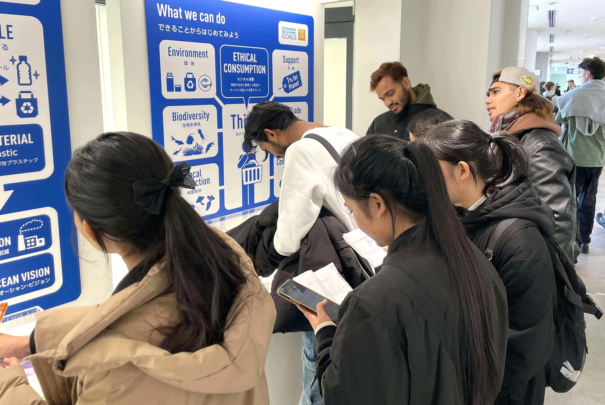 学生達は海の生き物に興味津々な一方で、海洋プラスチック問題に関する展示を見て、心を痛めている様子でした😢